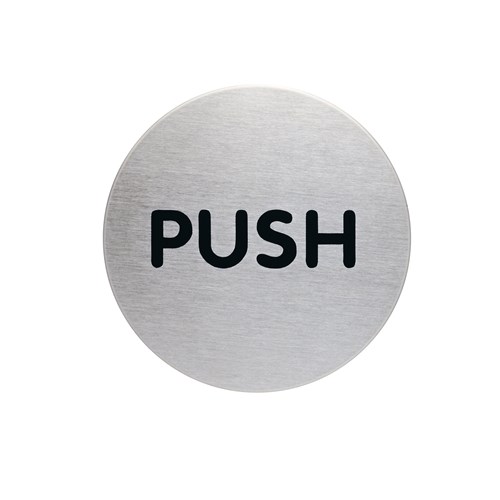 High quality door signs made from brushed steel. Ideal for any office or public building. Scratch-proof, hardwearing print. Versatile and easy to understand. Adhesive pad for fastening to a great variety of surfaces. Size: 65mm diameter.