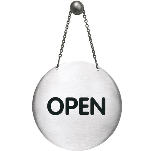 Durable Sign Reversible Open/Closed With Chain 130mm Diameter Silver