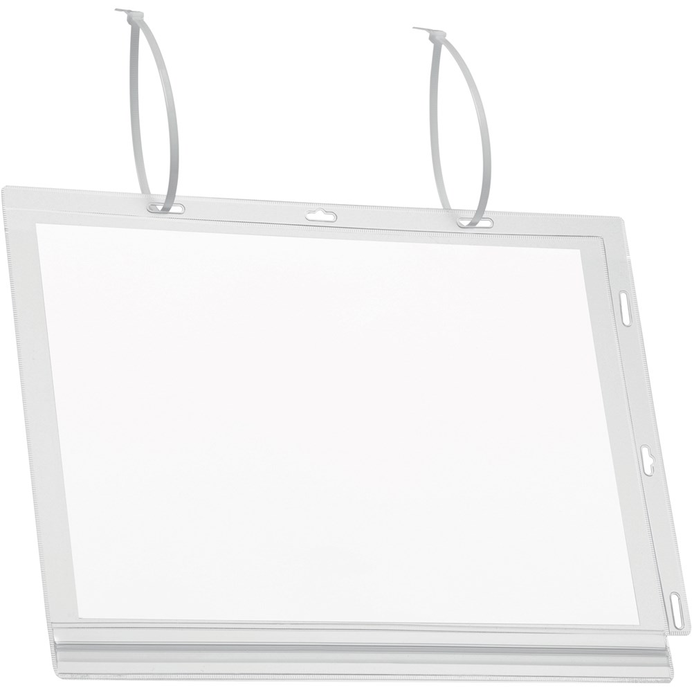 Water resistant, cable tie pockets for displaying notices or signs. The water proof pressure closure protects the contents against rain, humidity and dirt. Tested to IPX5 standards (can resist a sustained low pressure water jet spray). Can be used in portrait or landscape format. Anti-reflective.