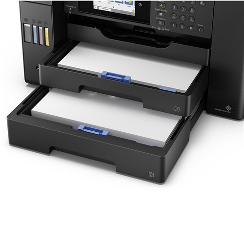 Print speed: Black text A4 (normal) 25.0 ISO ppm. Colour text A4 (normal) 12.0 ISO ppm. Print up to A3+ (13 inch x 19 inch); copy and scan up to A3 (11 inch x 17 inch). 500-sheet paper capacity plus a rear feed for specialty paper. 4.3 Inch Colour touchscreen for easy navigation. Comes with enough ink to up to 4,500 pages in black / 2,800 pages in colour straight from the box. Auto 2-sided print, A3 print, copy, scan and fax and includes 50-page 2 sided Auto Document Feeder. Ultimate wireless solution plus Ethernet ? easy Android tablet and smartphone printing; includes Wi-Fi Direct for network-free printing. 1 Year Manufacturer's Warranty.