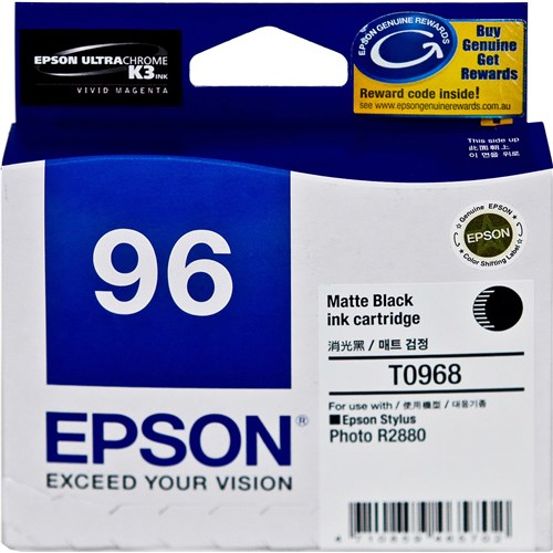 Compatible with Epson Stylus Photo R2880. It has an estimated page yield of 495 pages. Ideal for professional photographers that are looking for the highest quality prints in colour and black and white. The addition of Vivid Magenta expands the wide colour gamut of UltraChrome K3 further, making difficult colours easier to reproduce. This pack contains a single matte black ink cartridge.