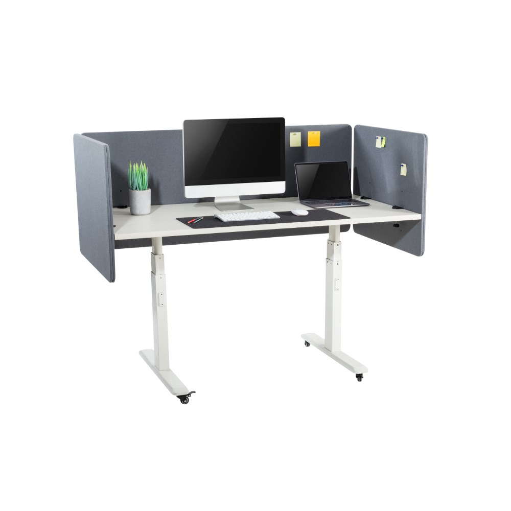 Desk-mounted polyester fibre privacy panels are designed to create a serene and productive environment. Effectively reduces noise, helping you maintain focus and productivity throughout the day. 3 height adjustable. Convenient clamp-on design allows for quick and hassle-free setup. Woven surface is pin-friendly, allowing you to personalise your panels with notes, reminders, or decorations to suit your daily routine. Available in multiple sizes to seamlessly fit any workspace, ensuring a perfect match for your specific requirements. 1 Year Manufacturer's Warranty. Delivery, installation and assembly charges may apply to furniture. Please enquire to confirm.