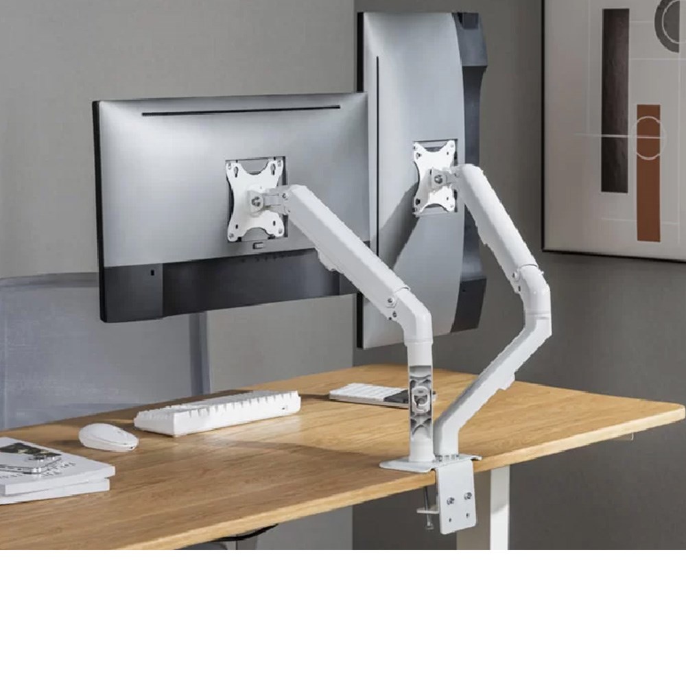 Ergovida Minimalist Spring Assisted Aluminium Dual Monitor Arm White