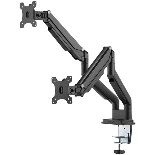 Clamp and grommet mounts to most any style desktop. Wide range of adjustments frees-up workspace. Rear tool holder easy access for any future adjustment. Effortless gas spring design adjusts easily to the most comfortable viewing position. Detachable VESA Plate for a quick and easy installation. VESA compatible 75mm x 75mm and 100mm x 100mm. Built-in Cable Management for an organised and neat workspace. Fits screen sizes 17inch to 32 inch. Weight capacity 1kg - 9kg per arm. 255-315mmW, 175-505mmH, Tilt range +90 degress to -90 degrees, Swivel range +90 degrees to -90 degrees, Screen Rotation +90 degress to -90 degrees.