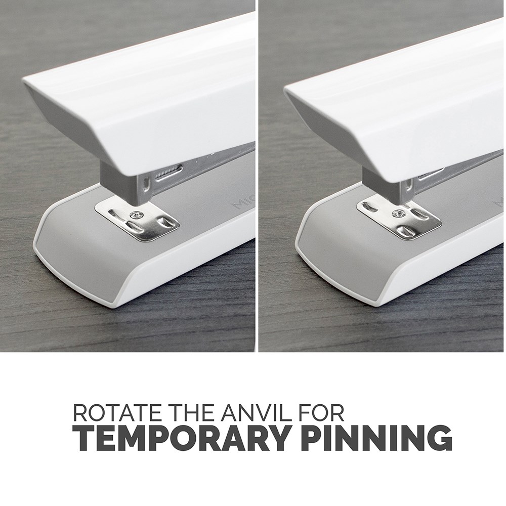 Full-strip desktop stapler for up to 20 sheets. Durable construction and jam-free design. Microban® antibacterial technology works 24/7 for an added level of hygienic product protection. Tacking & pinning options for attaching documents to bulletin boards or for temporary stapling. Low staple indicator window. Compatible with 24/6 and 26/6 staples. 10 Year manufacturer's warranty.