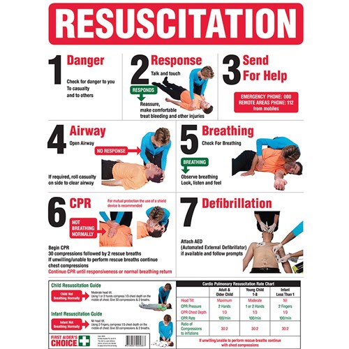 First Aider's Choice Workplace Safety Resuscitation Poster 450W x 600mmH