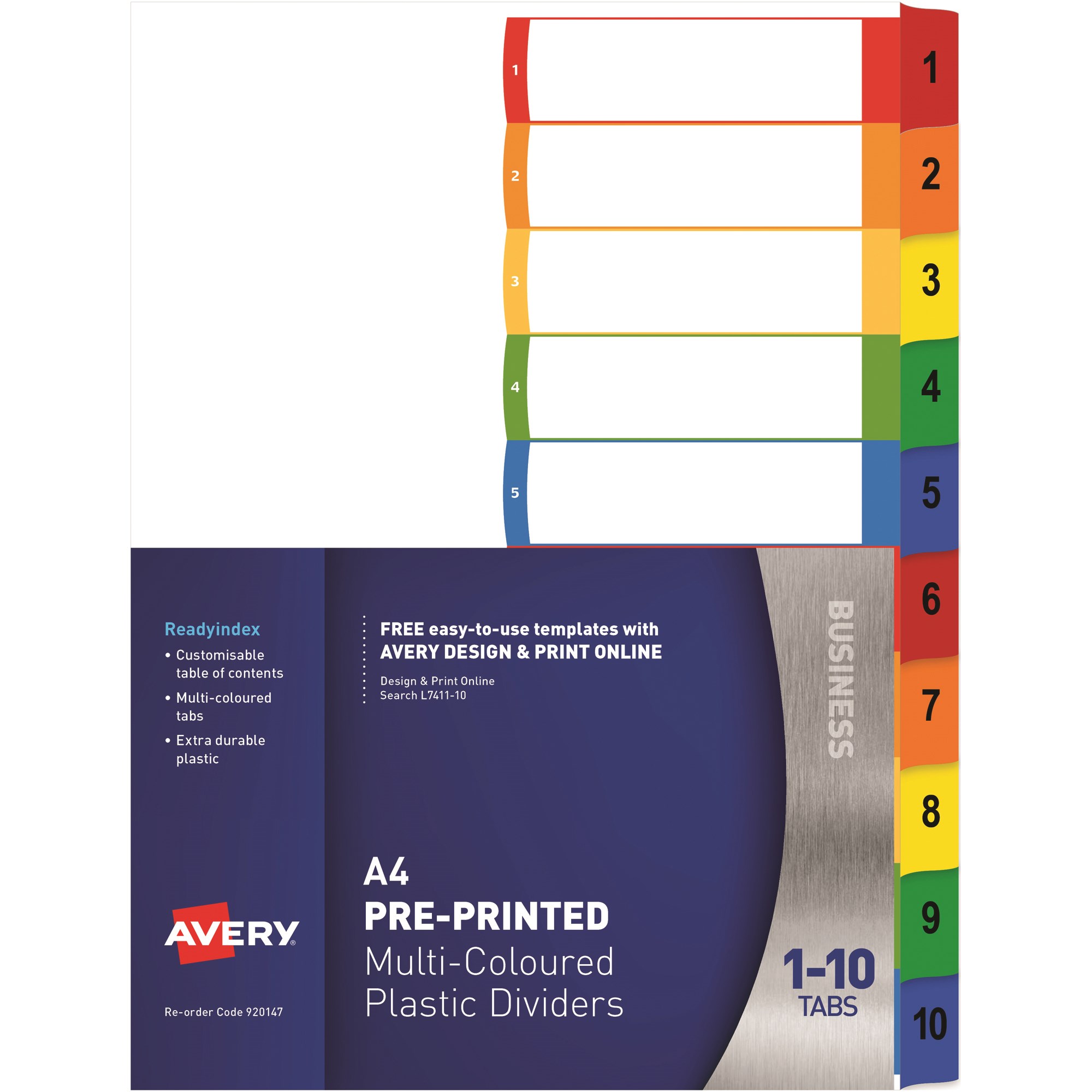 Avery Readyindex Plastic A4 1-10 Tab Numbered & Printable Cover Sheet