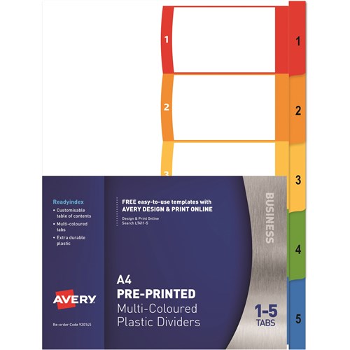 Avery Readyindex Plastic A4 1-5 Tab Numbered & Printable Cover Sheet