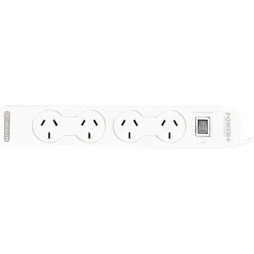 Italplast Power+ 4 Outlet Powerboard Master Switch And Overload Protection White