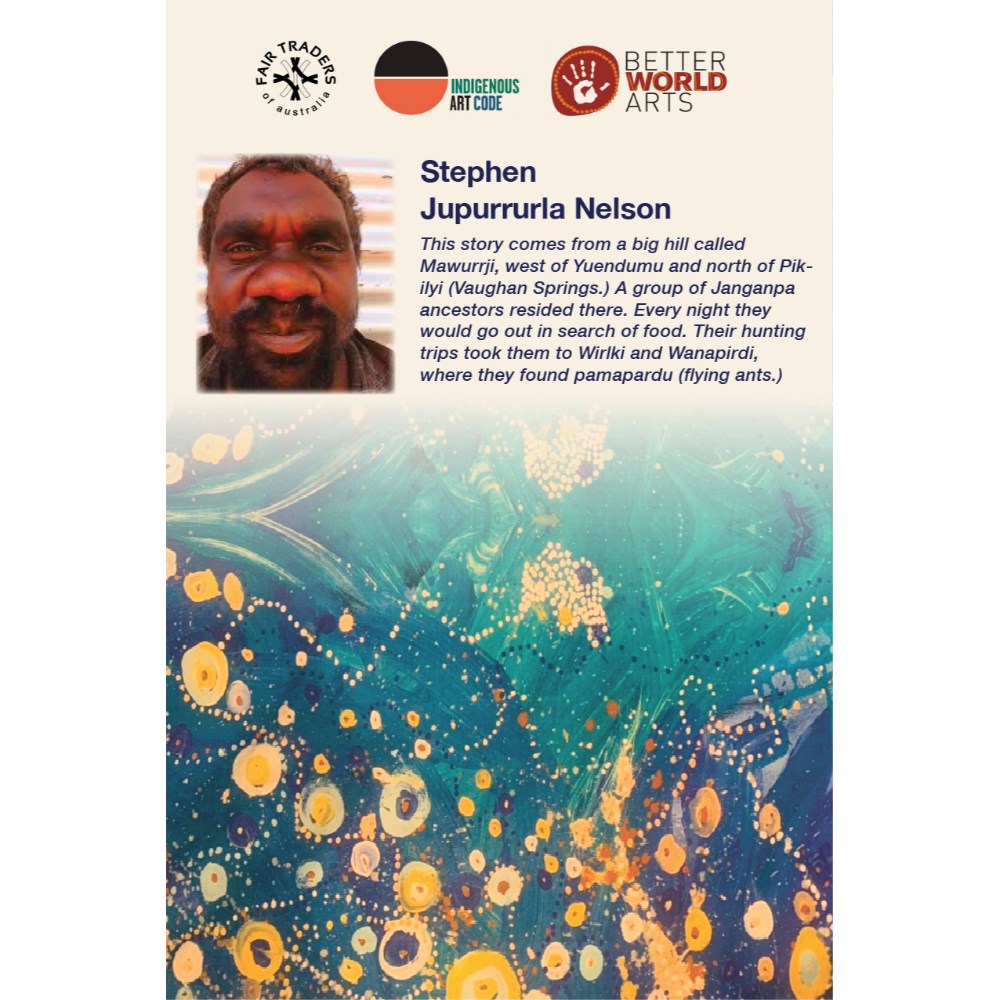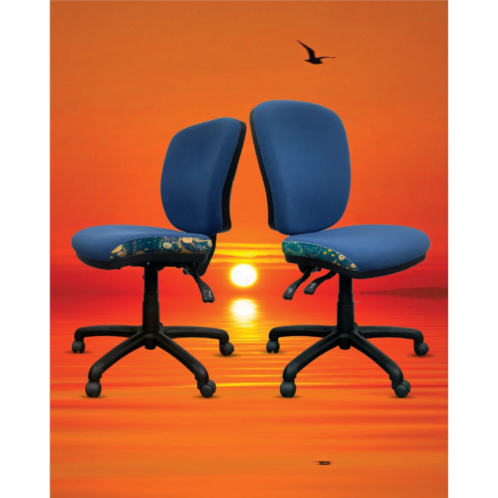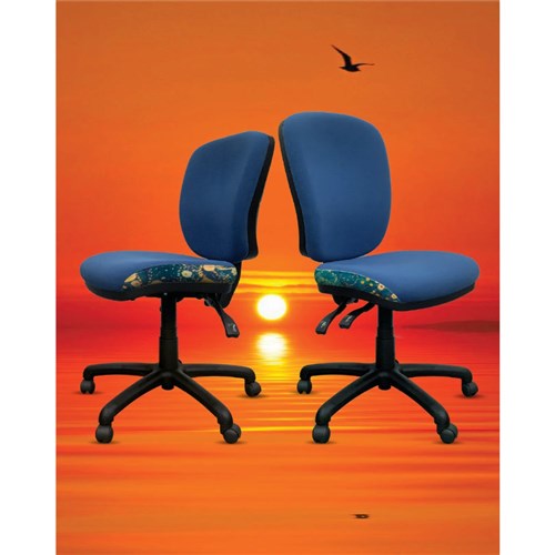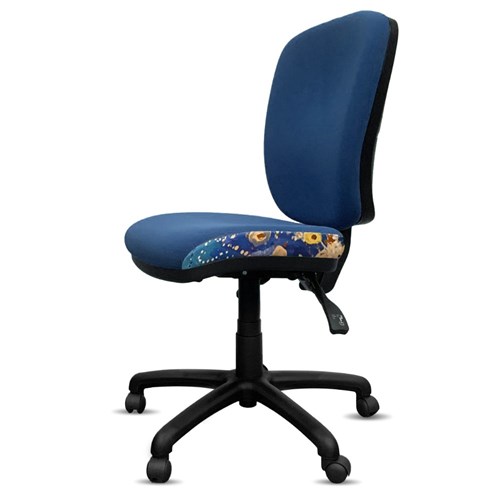 A unique commercial fabric designed by Stephen Jupurrurla Nelson (Indigenous artist) combined with K2 Ocean Blue Fabric to upholster the chair. Weight rating: AFRDI Rated Load 160kg Approved. Indicated seat hours: 24/7. Seat Dimensions: 510W x 490D x 460-590mmH. Back Height: 560mm. Back Width: 480mm. Heavy duty commercial chair with 3 lever mechanism and ratchet back height adjustment. 5 way 700mm commercial grade nylon base. Heavy duty gas lift cylinder. Moulded seat foam for supreme comfort. Fire retardant contoured moulded foam. Product image for reference only. Design pattern may differ as a result of variations in the art work. 10 Year Manufacturer's Warranty. Delivery, installation and assembly charges may apply to furniture. Please enquire to confirm. Optional adjustable armrest available. Refer to product code 3043352.