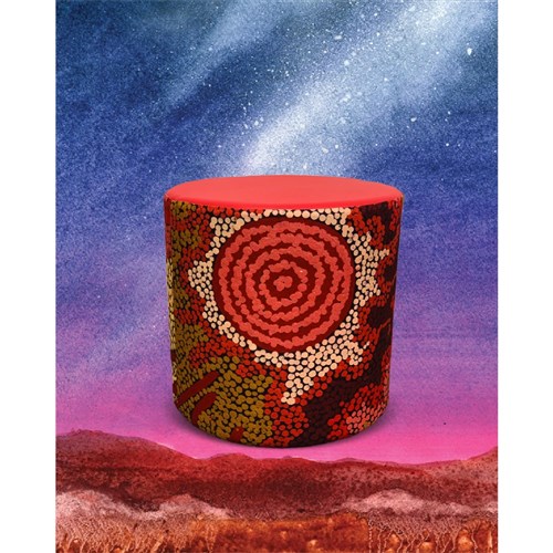 A unique commercial fabrics designed by Damien and Yilpi Marks (Indigenous artist) combined with K2 Commercial PU Leather. Weight rating: 120kg. Indicated seat hours: 12 hours. Dimensions: 450 Diameter x 450mmH. Provides flexible seating for open plan areas, reception and education spaces. Concealed feet. Fire retardant contoured moulded foam. Available in different size on request. Product image for reference only. Design pattern may differ as a result of variations in the art work. 5 Years Manufacturer's Warranty. Delivery, installation and assembly charges may apply to furniture. Please enquire to confirm.