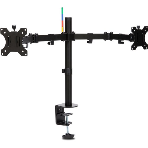 Clear valuable desk space while improving ergonomics. Wide adjustment range delivers 90 degrees swivel and 45 degrees monitor tilt adjustment for ergonomic comfort. 180 degrees rotation for landscape or portrait orientation. Extendable arms let you easily adjust the monitor Included C-clamp and grommet fastener require less desk space to attach, are easy to install. Quick-release VESA 75/100 mounting plate accommodates monitors up to 34' and 8kg per arm. Cable management system eliminates cable clutter for a cleaner desktop.