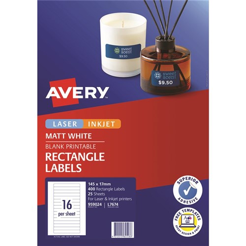 Avery Multi-Purpose Laser & Inkjet Labels White L7674 145x17mm 16UP 400 Labels