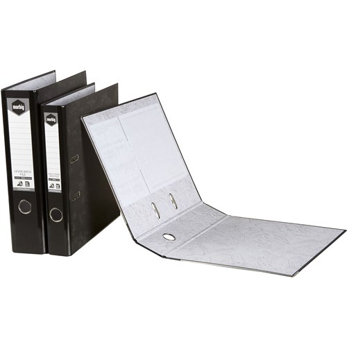 Marbig Lever Arch Binder Foolscap 75mm Board Reinforced Spine Mottle Black