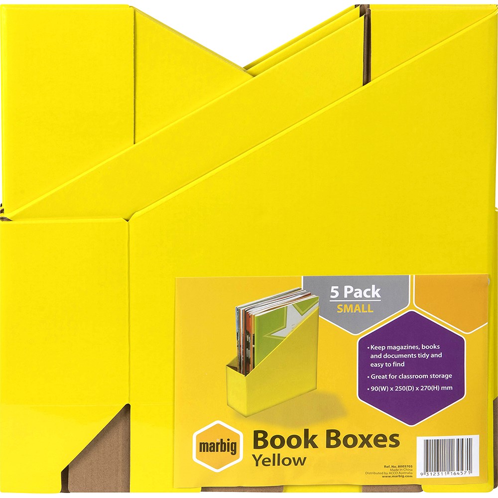 Marbig Book Boxes Small 90W x 250D x 270mmH Yellow Pack Of 5