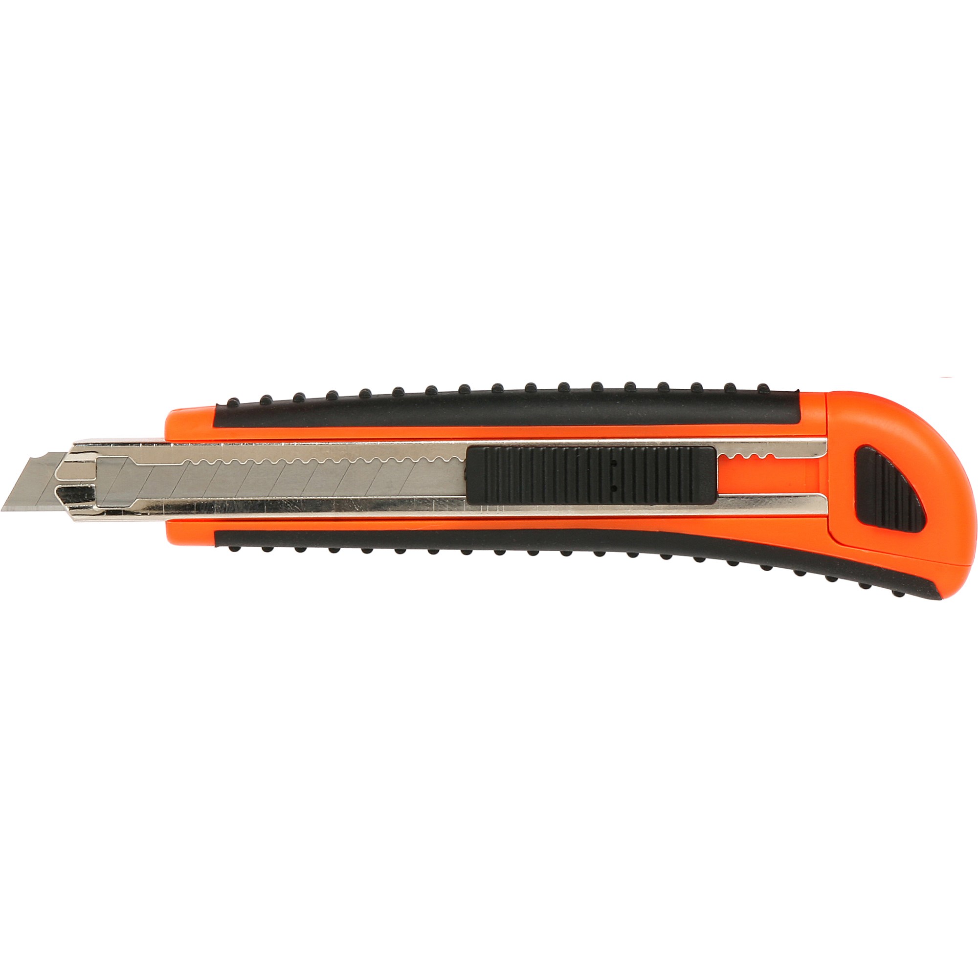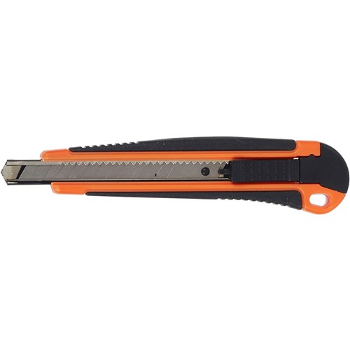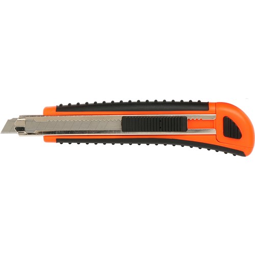 Solid case with metal sleeve for general use. Auto locking mechanism for safety. Snap off blades for easy use. 2 spare blades included.