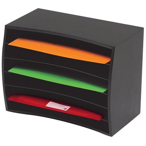 Organises desktops and workstations quickly and simply. Ideal for storing typing paper, envelopes and letterheads - easily fits A4 and foolscap sized articles. Modern curved design. Designed to suit any office décor. Can be used as a vertical or horizontal organizer.