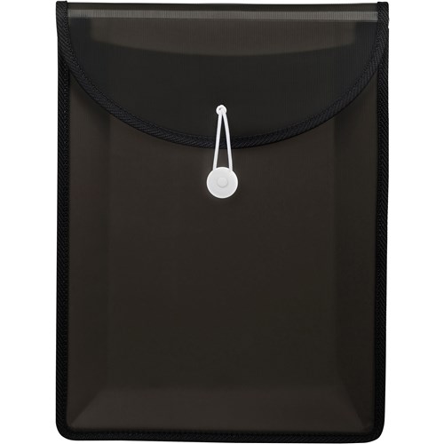 Perfect for students who need vertical filing on the go. Sized to fit into a school bag. Gusset expands to 65mm. Holds up to 600 sheets of 80gsm paper. Available in other colours. Reinforced edge webbing. Bungee cord closure.