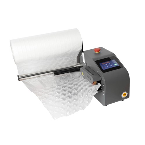 Will produce up to 20 metres of void fill per minute. Compact and efficient air pillow packaging machine suitable for industrial use. Produce void fill on demand, saving storage space.
