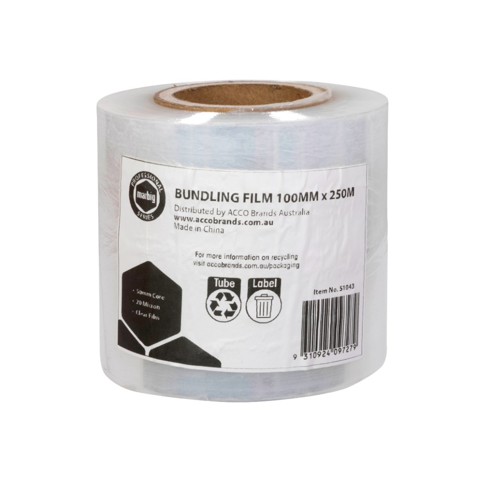 Marbig Professional Bundling Film Blown 100mm x 250m 2-Inch Core Clear