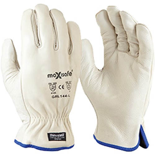 Beige A grade premium cow leather. 3M 100gm thinsulate lined for warmth. Elastic back. Wing thumb with double stitching. Suitable for: cold storage, agriculture and outdoor work, refuse handling, warehouse and construction. Available in sizes small to XL.