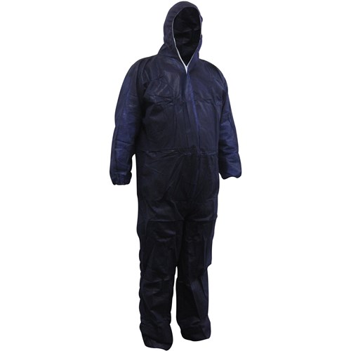 Lightweight polypropylene material with hood. Low cost protection for clean up or handling non-hazardous material. Elasticised wrist, ankles, hood and waist. Easy to put on and remove. Two way zipper opening. Ready access to clothing underneath. Durable and economical. Applications: Painting and decorating, mechanics, general maintenance and food manufacturing. Available is sizes Small to 3XL.
