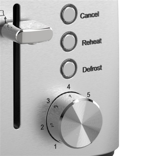 Compact style 4 Slice Toaster, ideal for use in any kitchen. 7 setting browning dial. Reheat, defrost and cancel buttons with indicator light. High lift lever. Wide toasting slots. Removable crumb tray. Power: 1850 Watt. Size: 290L x 285W x 193mmH. AUS/NZ Electrical Safety Standards approved. 2 Year Manufacturer's Warranty.