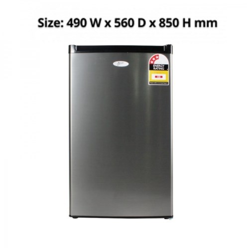 Compressor style with a 115 litre fridge and 10 litre freezer. Temperature range 0 degrees Celsius to +10 degrees Celsius. Dimensions: 490W x 560D x 850mmH. Star energy rating: 3. Reversible door. Recessed handle. All glass shelving. Three full width door racks. Flat back and adjustable feet. Interior light. AUS/NZ Electrical Safety Standards approved. 2 Year Manufacturer's Warranty. Delivery, installation and assembly charges may apply to furniture. Please enquire to confirm.