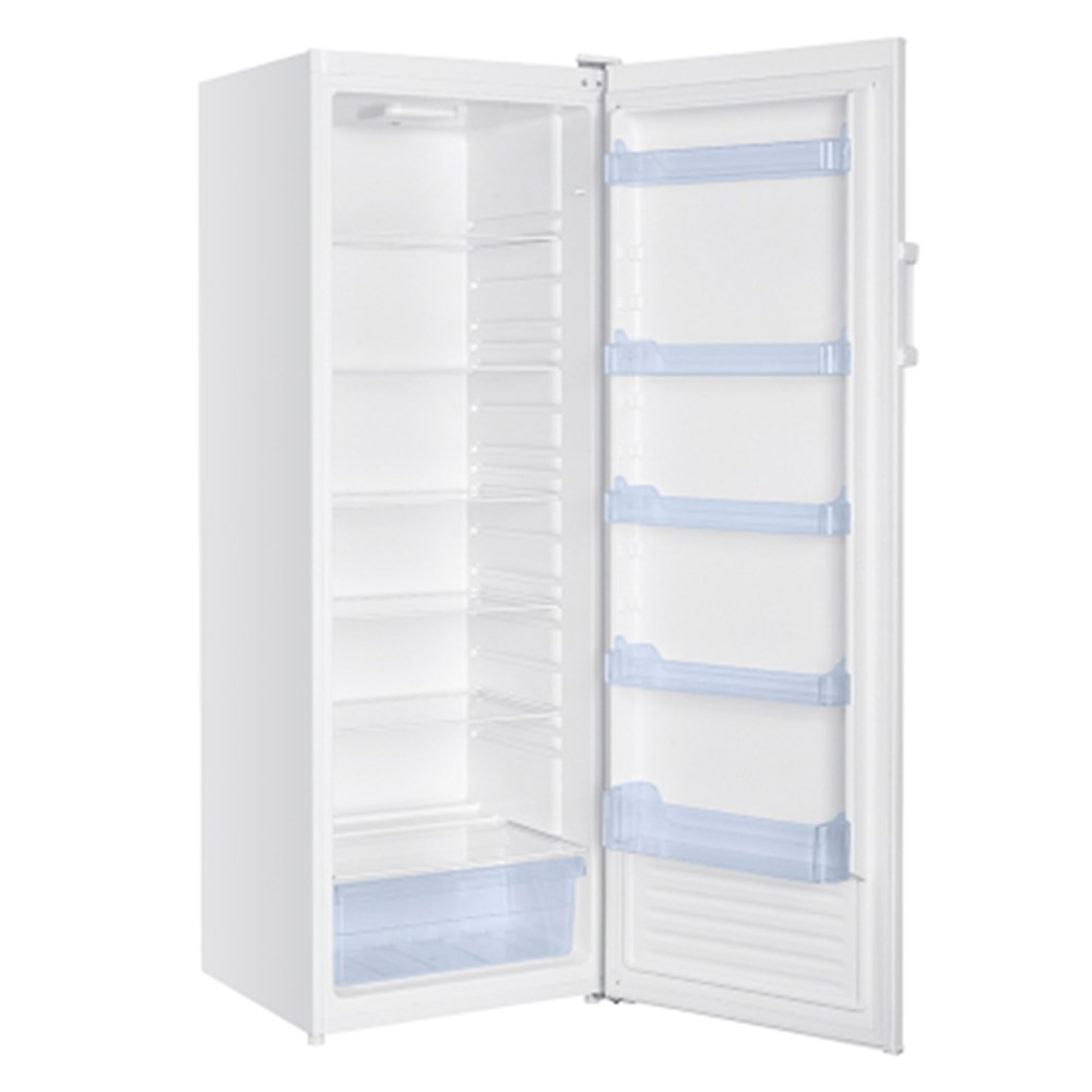 Compressor style with no freezer. Fridge only. Temperature range 0 degrees Celsius to +7 degrees Celsius Glass shelves and crisper. Five full width door racks. Flat back and adjustable feet. Dimensions: 600W x 600D x 1700mmH. Interior light. Reversible door. GEMS: 5 Star Rating. Capacity: 331 litres. US/NZ Electrical Safety Standards Approved. 2 Year Manufacturer's Warranty.