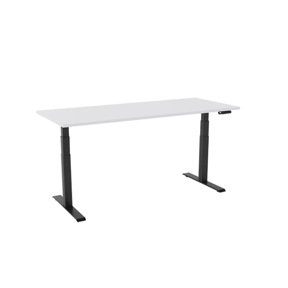 Height adjustable Black frame White top. Dimensions: 1200W x 750D x 685-1130mmH (incl worktop). 160 kg weight rating (evenly distributed). 3 stage, 4 point memory control with LCD readout, programmable to restrict min/max height and to set anti-collision sensitivity. 90 x 60mm legs. Flat foot design. Electric Double motor concealed in each leg and only 40db whilst in operation. Commercial grade 25mm worktops finished with matching 2mm PVC edge. 10 Year Manufacturer's Warranty. Delivery, installation and assembly charges may apply to furniture. Please enquire to confirm.