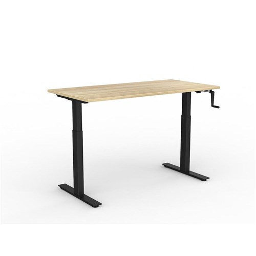 OLG Agile Winder Adjustable Single Sided Desk 1500W x 750D x 680-1130mmH Black/New Oak