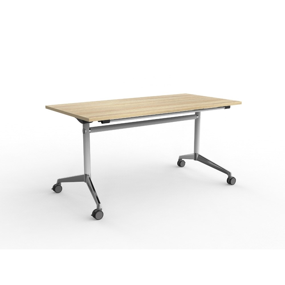 OLG Modulus Flip Table 1500W x 750D x 720mmH White Frame Chrome Feet New Oak Top