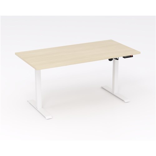 White frame and Nordic Maple top. Dimensions: 1200W x 750D x 720-1200mmH. Overall height range including the worktop is 720- 1180mm with an adjustment speed of 25mm/ second. Programmable handset with simple up and down buttons and 4 x memory settings and digital read out. Anti-collision sensor. Supports a computer, monitor arms, 2 x screens plus 50kg of additional weight. 2 column, single motor. Square 60 x 60mm leg profile with flat foot design. 25mm top. 10 Year Manufacturer's Warranty. Delivery, installation and assembly charges may apply to furniture. Please enquire to confirm.