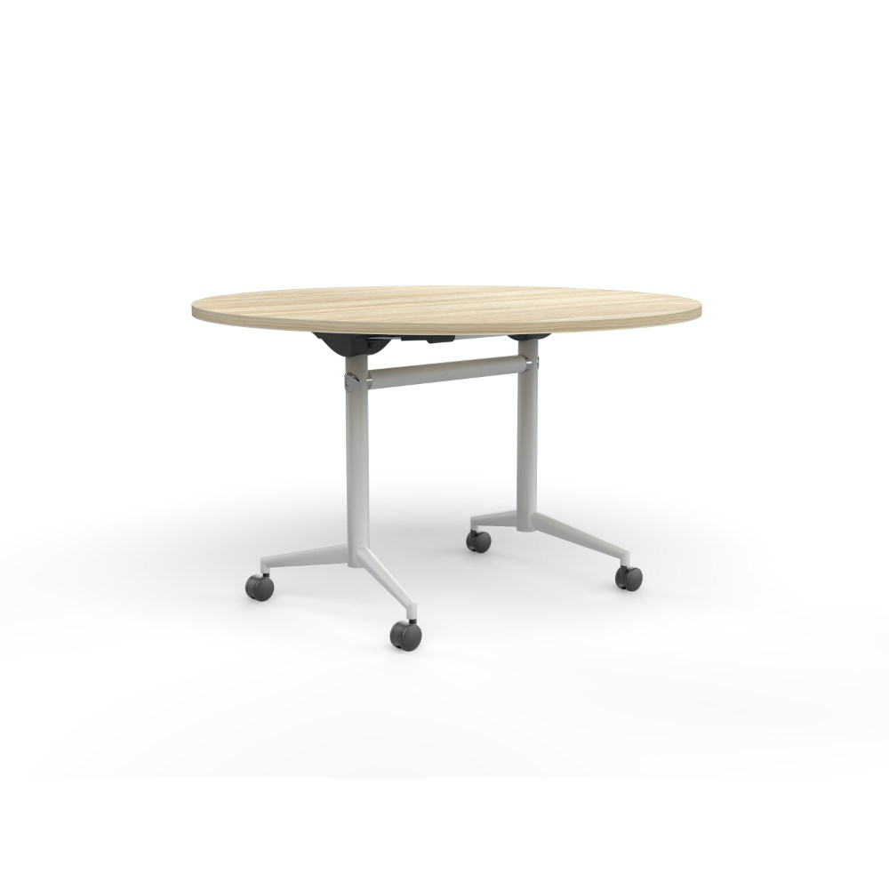 OLG Uni Round Flip Table 1200D x 720mmH New Oak Top White Frame