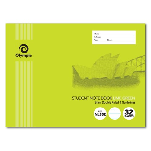 Olympic Notebook Student NSW 175x240mm 8mm Double Ruled 32 Page Landscape Green NL832