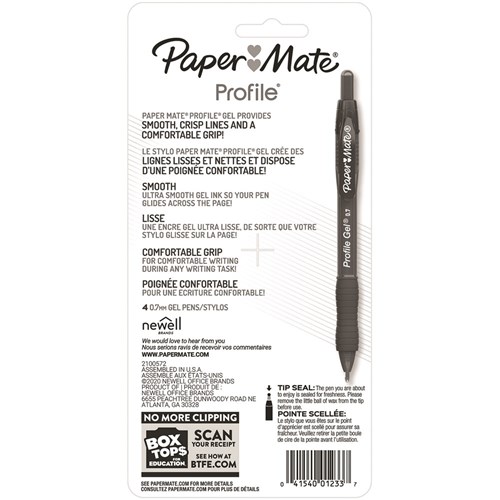 Papermate Profile Gel Pen Retractable 0.7mm Business Assorted Pack of 4