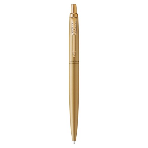The iconic Jotter pen in a larger body, perfect for those who enjoy the comfort of a bigger pen. Features a bold yet refined matte gold cap and barrel paired with a matching shiny signature arrow clip. Streamlined and lightweight with a retractable design that opens with a satisfying click. Quinkflow ink technology for smoother, cleaner, and more consistent writing performance. Packaged in a distinctive Parker gift box. 2 Year Manufacturer's Warranty.