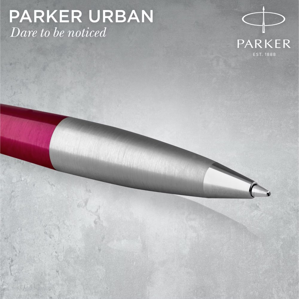 Parker Urban Twist Ballpoint Pen Vibrant Magenta Chrome Trim Blue Refill