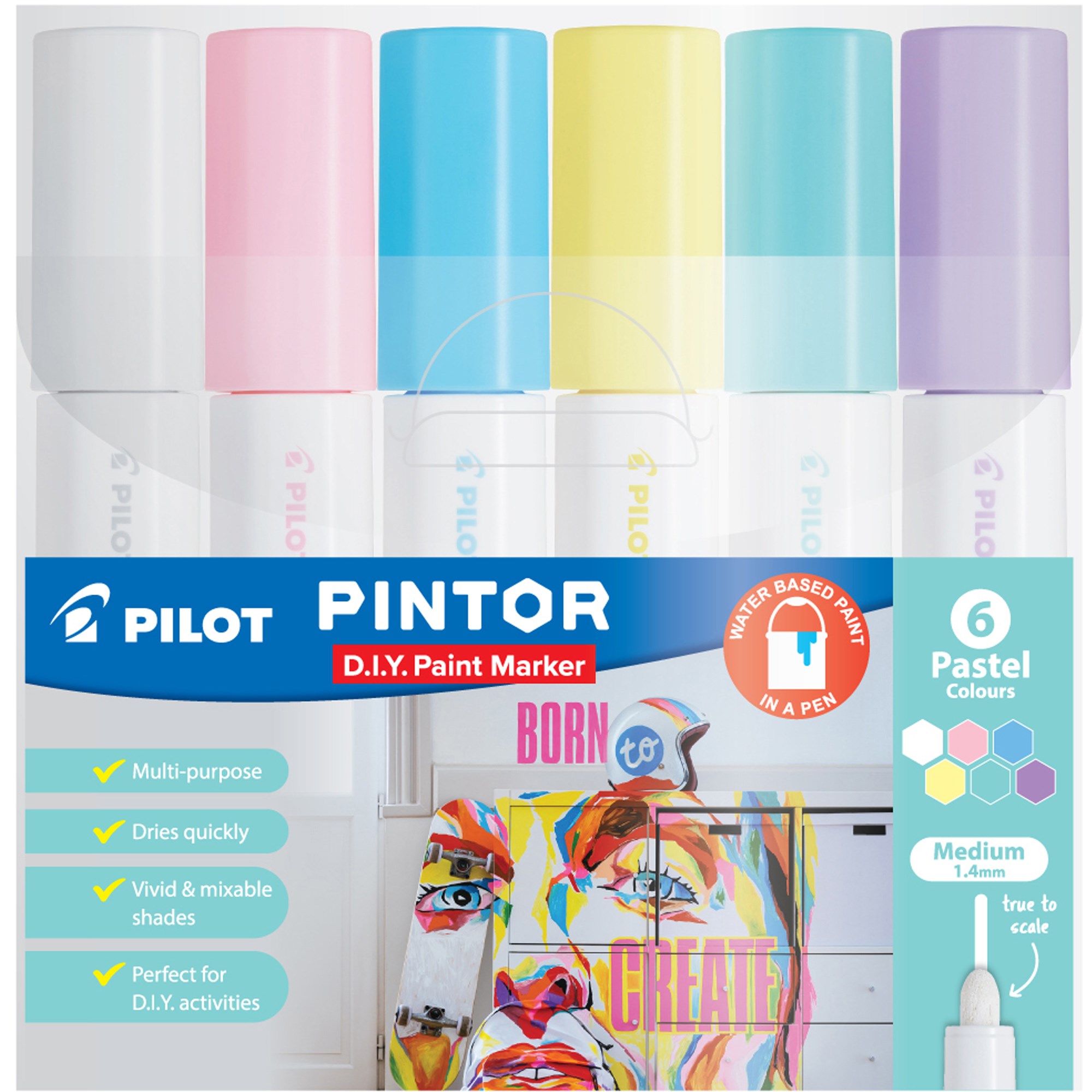 Pilot Pintor Paint Marker Medium 1.4mm Pastel Colours Wallet of 6