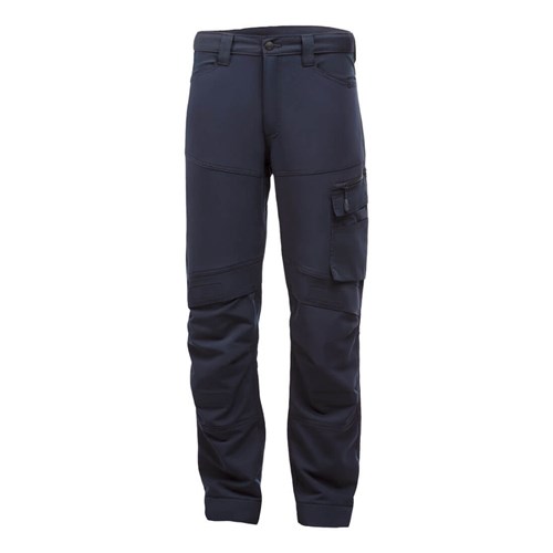 4-way stretch fabric for comfort. Pre-bent knees and slim fit design. Two-tier knee pad pockets. Multiple side zip compartments. Hammer loop and rule pockets. Elastic waist and adjustable hem. High rise back waistband. Triple-stitched seams with bartacks. 8 storage pockets incl. zipped thigh/back. Fabric: Kingsmill Polyester Stretch 93% Polyester, 7% Elastane 270g; Contrast: CorePro 88% Nylon, 12% Elastane.