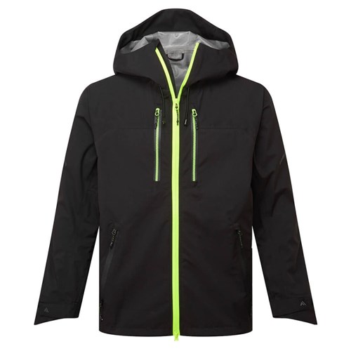 3-layer waterproof, breathable and lightweight stretch fabric with taped seams to prevent water penetration. Extremely water resistant PFAS free Texpel Splash Eco fabric finish, water beads away from fabric surface. Premium styling with pre-formed elbow shaping and ActiReach Active armhole for ergonomic overreach. Hood features: Helmet compatible adjustable hood with peak, drawstrings and vertical/horizontal adjustment. Design details: Dipped back hem, chin guard, easy grip pullers and reflective print for visibility and safety. Ventilation features: Underarm pit zips for enhanced breathability. Fit adjustments: Touch tape cuffs and drawcord adjustable hem for a secure fit. Pocket features: 5 pockets including side zip pockets, zipped chest pockets and an internal pocket. Two-way waterproof harness-friendly zips for quick and easy access. Fabric: 100% Polyester Stretch 75D TPU Membrane bonded to 100% Polyester 30D Tricot 150g.