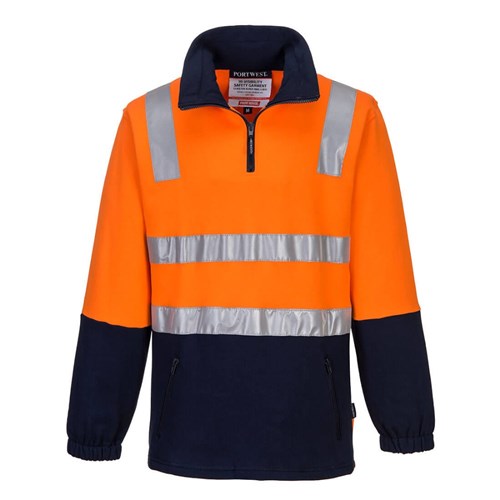 Portwest Hi-Vis Contrast 1/4 Zip Brush Fleece Jumper With Tape XL Orange And Navy