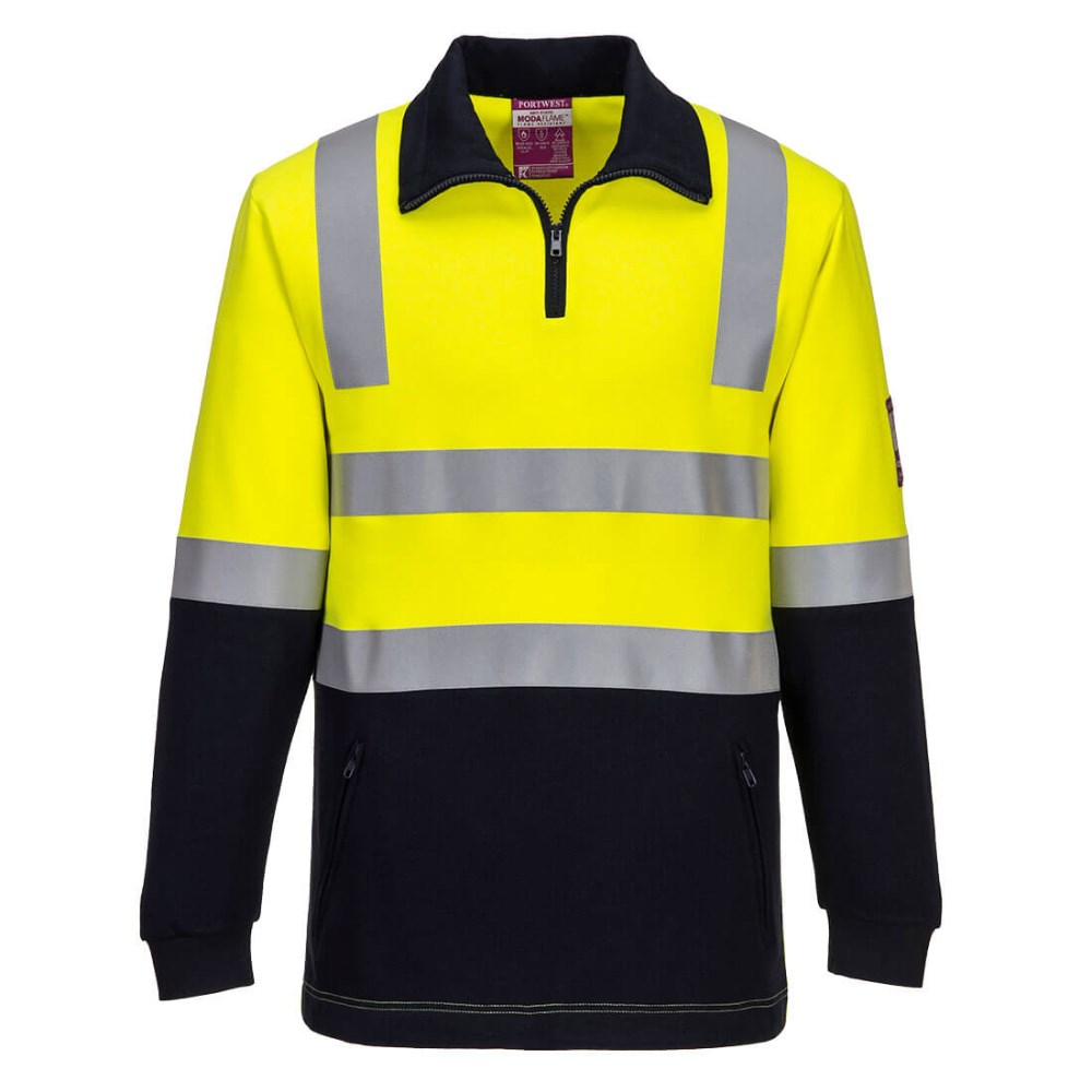 Portwest Modaflame Fire Resistant Day Night Brushed Fleece Jumper L Yellow/Navy