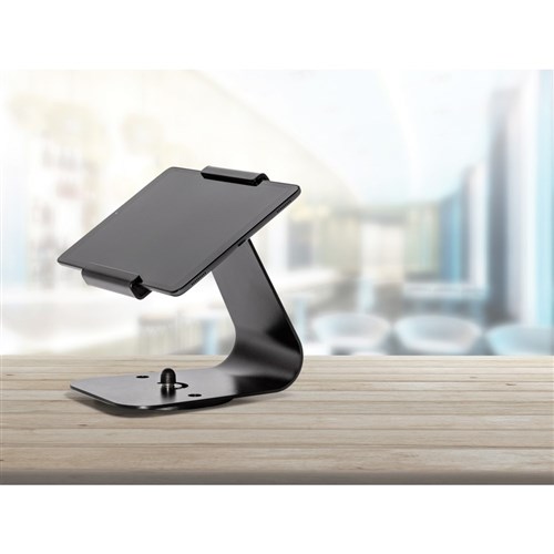 This stand is compatible with all iPads and tablets that have a width of 148 mm to 183 mm. It can be secured using 2 screws. If remaining portable, the silicone foot keeps it non-slip on countertops. It attaches magnetically to cash drawers. It's constructed from solid steel. The 180 degree swivel base allows you to rotate it without needing to lift or remove the tablet from the stand. The silicone keeps your tablet screen free from scratches, scuffs and dirt. The compact design comes in Classic Black. 1 Year Manufacturer's Warranty. Tablet is NOT included - Stand Only.