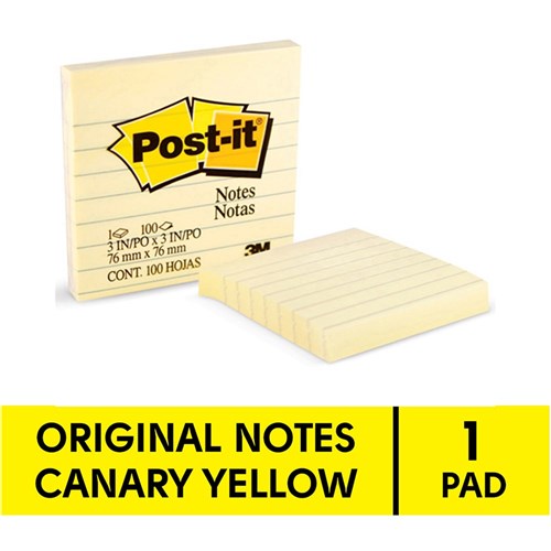Post-It 630SS Notes Original 76x76mm Lined Yellow 100 Sheets