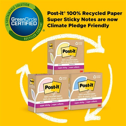 100% recycled paper and packaging. 2 x sticking power. Stick and restick on doors, walls, windows, computer screens and more. Take your notes, ideas and reminders with you. 70 sheets per pad.