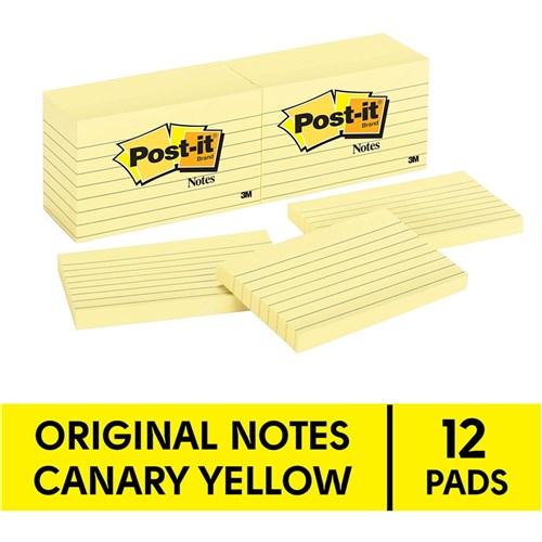 Post-It 635 Notes Original 76x127mm Lined Yellow 100 Sheets Pack of 12