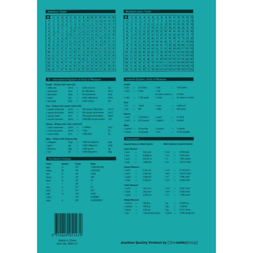 • System of measurement and Mathematical tables at the back.
