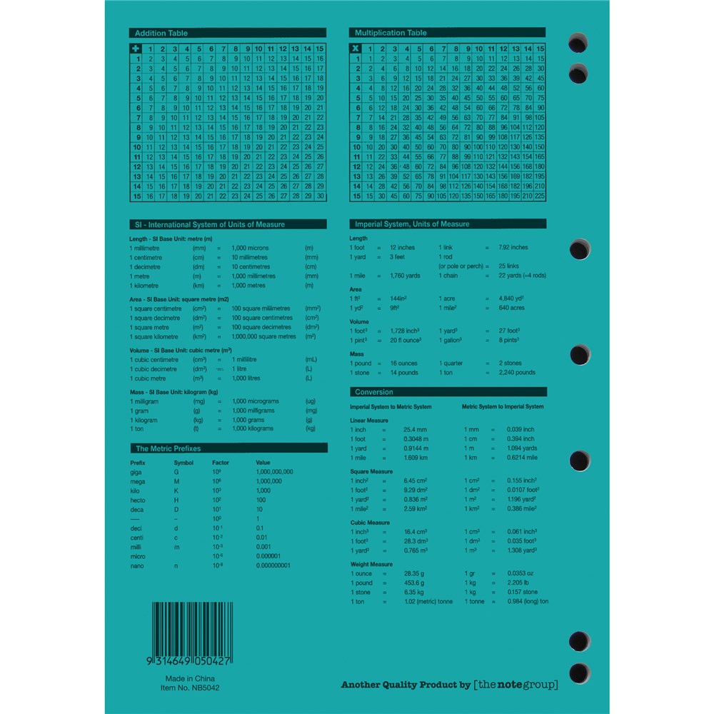 • 4 year calendar, activity page, maths tables & red margin.