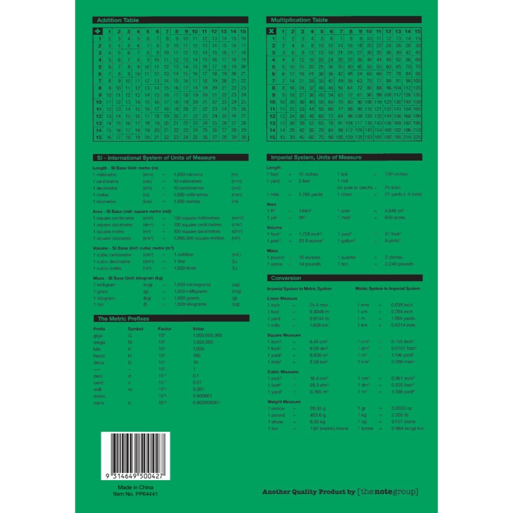 Made of premium quality paper with strong and durable polypropylene cover. Teachers reference E18. Green printed insert sheet. 70gsm paper. 5mm grid ruled.